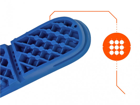 The insole's special and unique geometry give the best shock absorption system. Its precise and special design allows high flexibility and breathability, while offering superior comfort and helping to reduce the risk of micro-lesions in tendons, bones and joints, as well as leg fatigue.